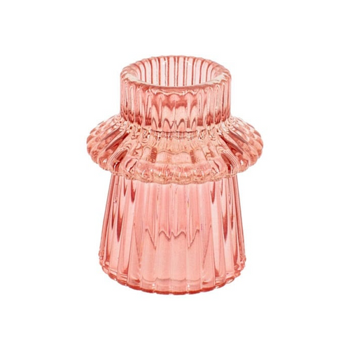 Kaarsenstandaard glas ribbel groot - Roze