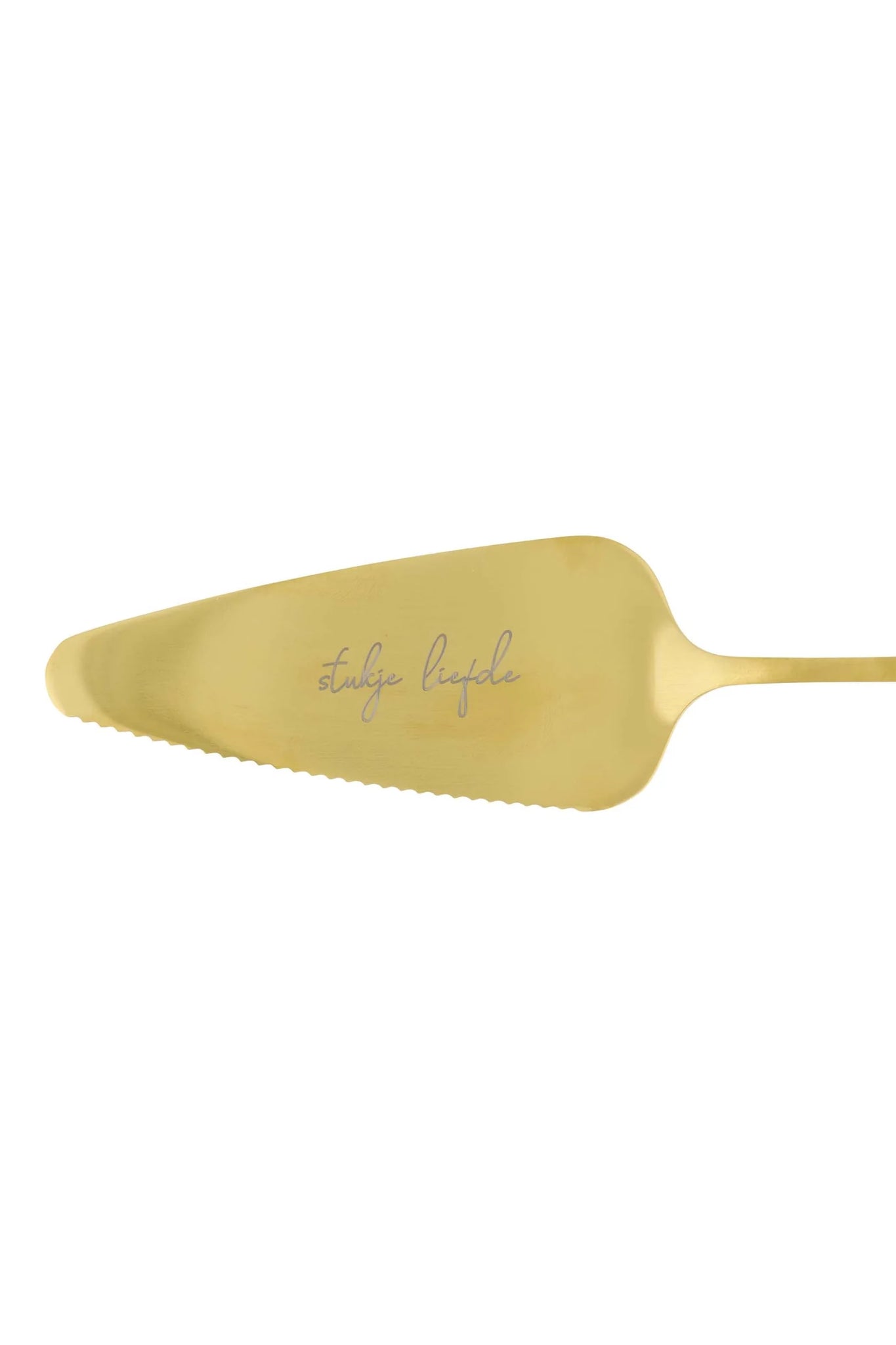 Alsjeblieft, een lekker stuk liefde! Met deze set serveer je ieder stuk taart met een grote smile. De set is voorzien van de quote ‘Stukje liefde’ en een lief hartje. Een must-have voor iedere verjaardag of high tea. De taartschep en het taartmes zijn gemaakt van metaal.