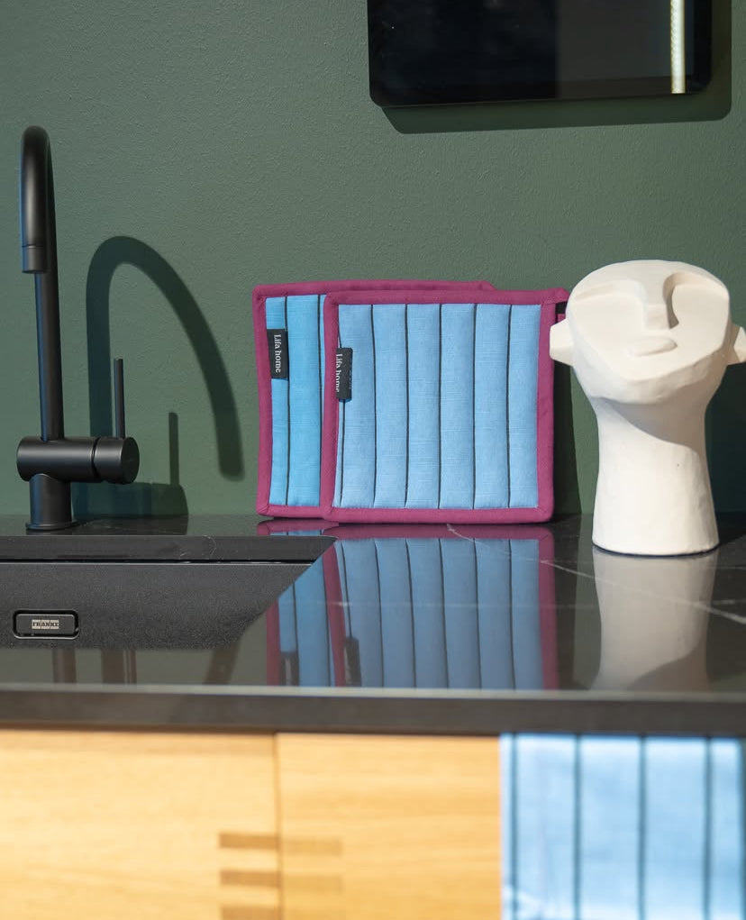 Geef je keuken een extra vleugje gezelligheid met deze stijlvolle pannenlappen. Gemaakt van 100% organisch katoen, bieden ze uitstekende hittebescherming en voelen ze heerlijk zacht aan. De moderne ontwerpen en kleuren passen perfect bij de nieuwste interieur- en modetrends. Met deze elegante pannenlappen voeg je zowel functionaliteit als flair toe aan je keuken.